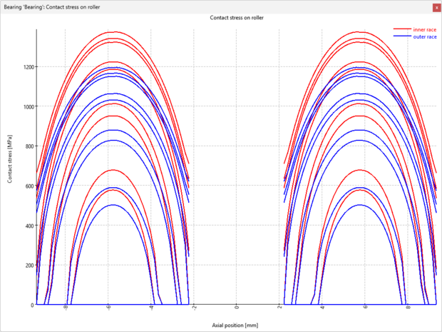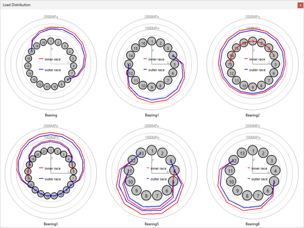 Using the software the load distribution, life and stiffness can be calculated dependent on the pretension of the bearing set. The pretension can be individually set for each bearing. This also allows checking if the pretension is large enough and the bearings get load in each load case. A combination of cylindrical roller bearings in a planetary gear can determined as well.