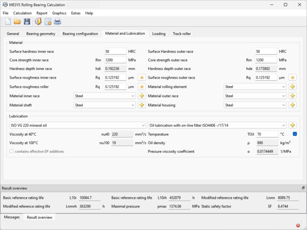 The rolling bearing analysis software is calculating the life of rolling bearings according ISO/TS 16281 considering the inner geometry of the bearing. The software is considering the following effects: