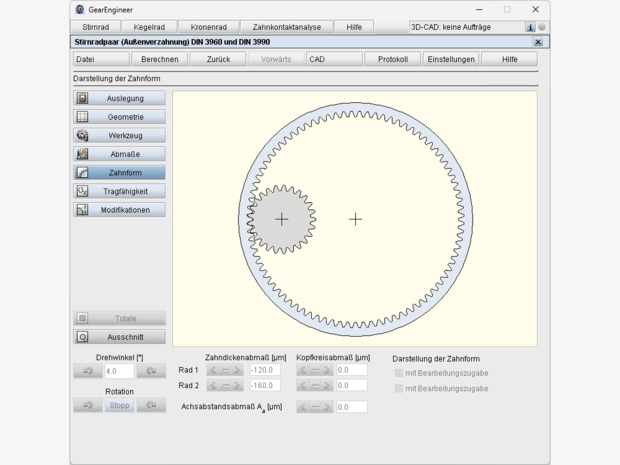 Der GearEngineer ermöglicht die Berechnung von evolventischen Stirnradverzahnungen als: