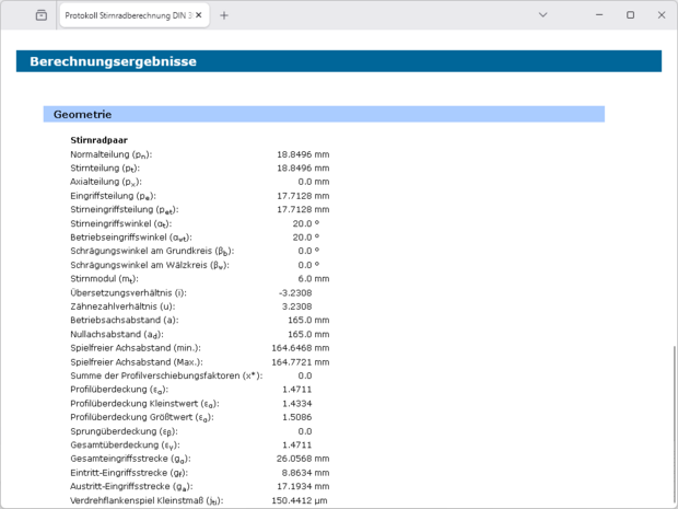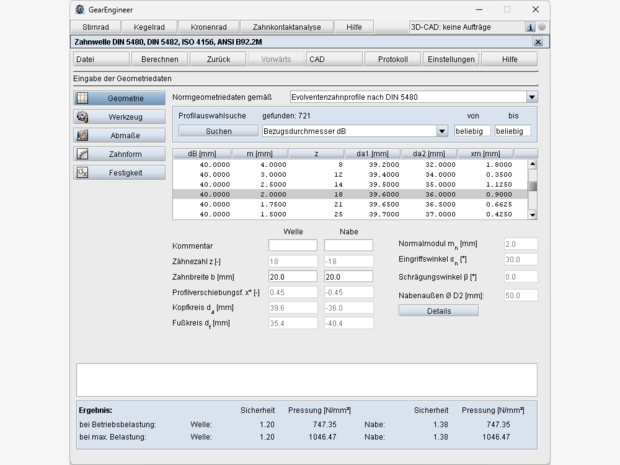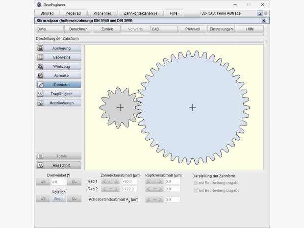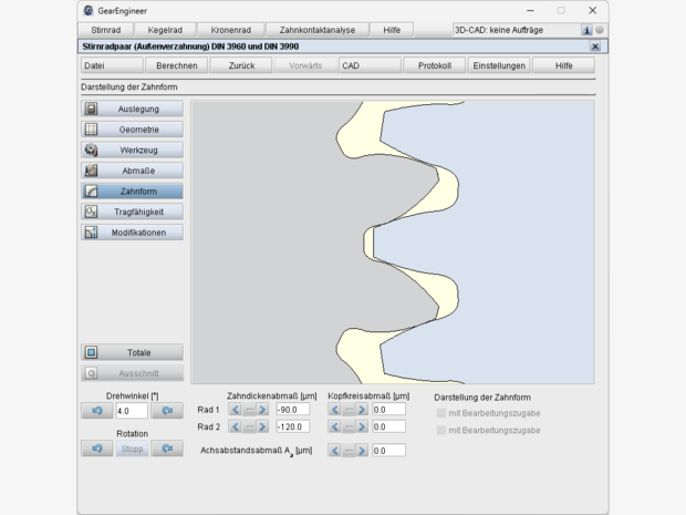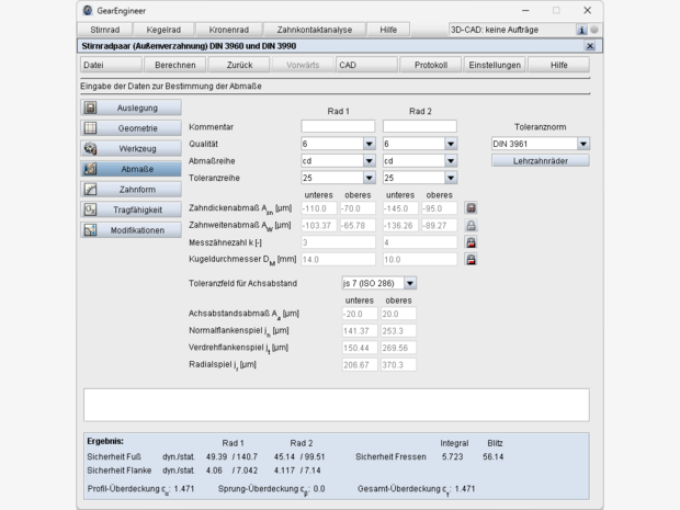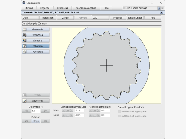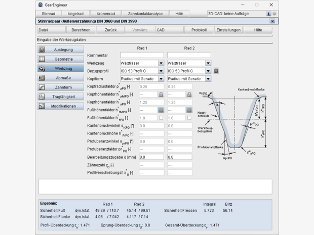 - Betriebsachsabstand vorgebbar oder Berechnung aus Profilverschiebungsfaktoren