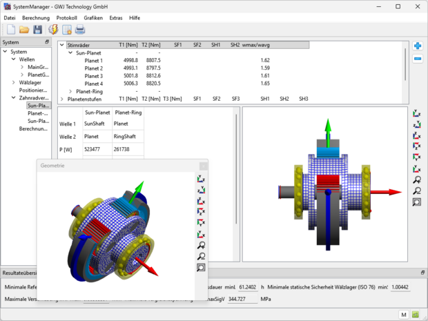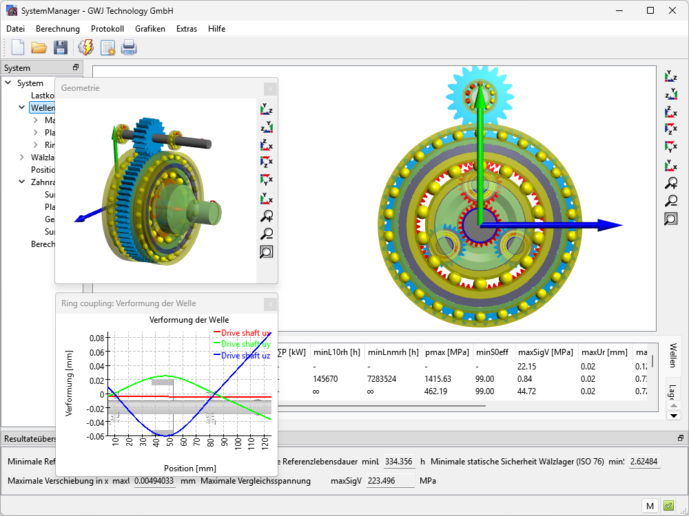 - Definition von Wellen: Geometrieeingabe und -import, Belastungen, Lagerung/Randbedingungen, nichtlineare Wälzlagersteifigkeit…