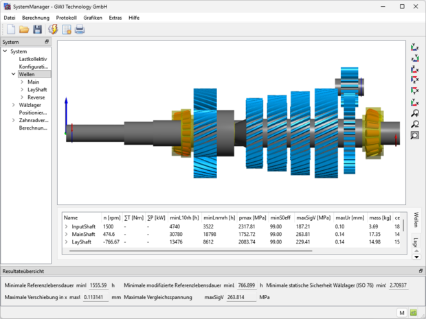 Wellenberechnung: Dauer- oder Zeitfestigkeit, Schubverformung, Lastkollektive, Schmierung… - Koordinatensystem, Baumstruktur, Gruppendefinition, verschieben und kopieren von Wellen